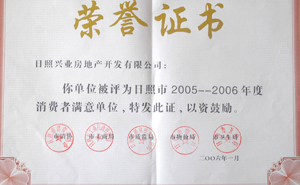 ·2006年1月,興業(yè)房地產(chǎn)獲得“2005-2006年度消費(fèi)者滿意單位”