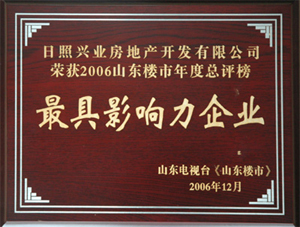 ·2006年12月,日照興業(yè)房地產(chǎn)開發(fā)有限公司榮獲2006山東樓上年度總評(píng)榜最具有影響力企業(yè)