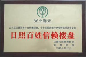 ·2007年3月,興業(yè)春天被日照市消費(fèi)者協(xié)會(huì)評(píng)為“日照百姓信賴樓盤”