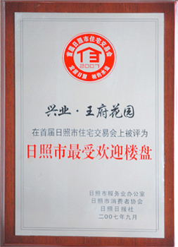 ·2007年9月,興業(yè)王府花園日照市最受歡迎樓盤
