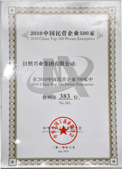 ·2010年8月,興業(yè)集團在2010中國民營企業(yè)500家中列383位