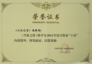 2013年3月,《興業(yè)之窗》榮獲“2012年度日照市十佳內部資料”