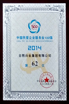 ·2014年8月,興業(yè)集團排名“中國民營企業(yè)服務(wù)業(yè)100強”第62位