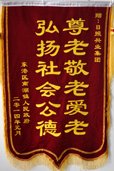 ·2014年元月,東港區(qū)南湖鎮(zhèn)人民政府贈于興業(yè)集團“尊老敬老愛老,弘揚社會公德”錦旗