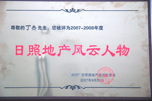 · 2007年9月30日,丁杰董事長榮獲“日照地產(chǎn)風云人物”榮譽稱號