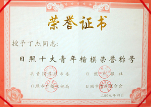 · 2009年4月,丁杰董事長榮獲“日照楷模十大青年”榮譽稱號