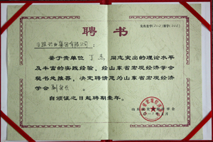 ·2012年5月,山東省宏觀經(jīng)濟學會聘請丁杰董事長為“山東省宏觀經(jīng)濟學會副會長”
