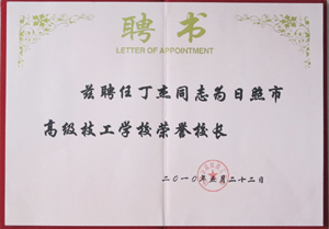· 2003年7月,茲聘任丁杰董事長為日照市東港區(qū)人民政府高級經(jīng)濟顧問