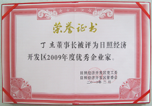 · 2010年2月,丁杰董事長榮獲“日照經(jīng)濟開發(fā)區(qū)2009年度優(yōu)秀企業(yè)家”榮譽稱號