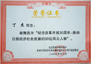 · 2008年12月,丁杰董事長被評為“紀念改革開放30周年風云人物-推動日照社會經(jīng)濟發(fā)展的30位風云人物”