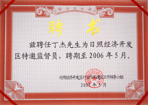 · 2005年2月2日,茲聘任丁杰董事長日照經(jīng)濟開發(fā)區(qū)經(jīng)濟顧問