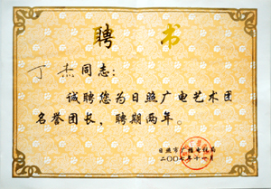 · 2007年11月,誠聘丁杰董事長為“日照廣電藝術團名譽團長”