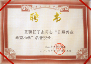 · 2004年11月,茲聘丁杰董事長為“日照希望小學榮譽校長”