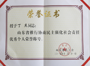 ·2015年12月,山東省總工會授予丁杰董事長“山東省推行協(xié)商民主強化社會責任優(yōu)秀個人”榮譽稱號。