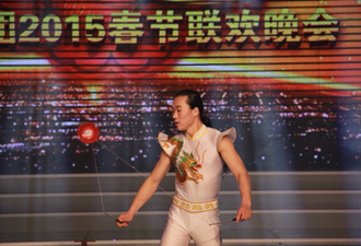 《星光大道》年度六強(qiáng)、被譽(yù)為“舞臺(tái)開(kāi)心果”的陸海濤登場(chǎng)獻(xiàn)唱自己的新歌《好媳婦》,原汁原味的東北風(fēng)味唱腔幽默風(fēng)趣,引爆現(xiàn)場(chǎng)氣氛,他還親切地與觀眾互動(dòng),快速切換模仿模式,分別用楊坤、趙本山、劉歡、騰格爾、殷秀梅的聲腔表演歌曲《無(wú)所謂》,惟妙惟肖,博得現(xiàn)場(chǎng)一陣陣掌聲;集團(tuán)春晚常青樹(shù)——興業(yè)社區(qū)文體活動(dòng)俱樂(lè)部的中老年朋友們精心編排了舞蹈《幸福如意》,舞出了6萬(wàn)業(yè)主“住在興業(yè),一起幸!钡男穆;大型人屏互動(dòng)節(jié)目《我是興業(yè)小蘋(píng)果》,將臺(tái)上、臺(tái)下融為一體,整個(gè)演播大廳變?yōu)闅g樂(lè)舞動(dòng)的海洋;歌伴舞《愿得一人心》浪漫纏綿,表達(dá)了祝福天下有情人終成眷屬的美好心愿;2008年曾作為特邀演員參演興業(yè)春晚的雜技演員周天,再次登臺(tái)帶來(lái)全新雜技表演《抖空竹》,他技藝超群,令人目不暇接,引得現(xiàn)場(chǎng)觀眾一陣陣驚呼贊嘆。