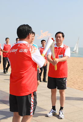 秋高氣爽,風(fēng)和日麗。9月23日上午,日照海濱彩旗飄揚,萬眾歡騰,主題為“祝福祖國,共享全運,國泰民安,傳遞和諧”的中華人民共和國第十一屆運動會火炬?zhèn)鬟f活動在日照舉行。集團董事長丁杰光榮成為全運會的火炬手,參加了當(dāng)天全運會火炬日照傳遞活動。