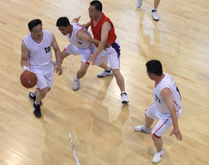 在比賽過程中各支代表隊都發(fā)揮出了極高的水平,為觀眾奉獻了一場場精彩的比賽。尤其在9月20日上午的交叉賽中,興業(yè)汽配代表隊與天泰鋼結(jié)構代表隊勢均力敵,比賽中雙方比分交替上升,離結(jié)束還有不到20秒時,汽配代表隊61:58領先3分并持有球權,此時汽配隊員的心理感覺穩(wěn)操勝券,一個不經(jīng)意的走步把球權送給對手,離結(jié)束不到2秒,鋼構中鋒馬沖順勢強攻,一記精準的3分遠投, 將比分追成61平,使比賽拖進加時。在加時賽中,汽配中鋒崔冰連續(xù)中投得手,興業(yè)汽配代表隊最終以73:65的比分完勝鋼構,躋身本屆籃球比賽的冠、亞軍決賽。因為天氣原因,9月20日下午的半決賽、決賽和驥翼組籃球表演賽改在日照一中室內(nèi)籃球場舉行。半決賽、決賽異常激烈,特別是在興發(fā)和汽配之間進行的決賽,展示了興業(yè)集團籃球的實力和水平,興發(fā)隊員們一次次嫻熟的配合,一個個精彩的扣籃,不時獲得現(xiàn)場觀眾的陣陣喝彩和掌聲。集團驥翼隊與興發(fā)驥翼隊的籃球表演賽同樣上演了群雄大戰(zhàn),集團驥翼隊在王建國總經(jīng)理帶領下,抗拒了體力不足,堅持打滿全場,最終以44:44的比分和興發(fā)驥翼隊握手言和(因?qū)俦硌葙惒辉偌訒r),也宣告興業(yè)集團第五屆職工運動會籃球比賽鳴金收兵。