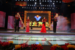 | 璀璨舞臺(tái)道祥瑞,歡歌笑語賀新春。2月7日下午,日照廣播電視臺(tái)1000米演播大廳里歌聲飛揚(yáng),熱鬧非凡,“興業(yè)春天”日照興業(yè)集團(tuán)2010年春節(jié)聯(lián)歡晚會(huì)在這里成功舉辦。日照興業(yè)集團(tuán)領(lǐng)導(dǎo)班子和來自興業(yè)各條戰(zhàn)線上的職工代表500余人歡聚一堂,滿懷喜悅的觀看了這場由興業(yè)人自編、自演、自導(dǎo)的文藝晚會(huì)。