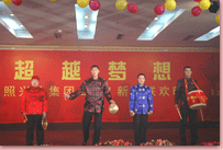 瑞犬凱歌辭舊歲,花豬起舞賀新年。2月6日晚,凱萊大酒店會(huì)展中心內(nèi)歌聲悠揚(yáng)、掌聲陣陣,“2007年日照興業(yè)集團(tuán)迎春聯(lián)歡文藝晚會(huì)”正在這里舉行。集團(tuán)領(lǐng)導(dǎo)丁杰、王建國(guó)、韓金軍、趙文強(qiáng)、申作華、李麗萱、李春賢以及集團(tuán)機(jī)關(guān)、各分公司的標(biāo)兵、先進(jìn)工作者、職工代表近400人一起興致勃勃地觀看了演出。全國(guó)政協(xié)委員、民革中央畫院院長(zhǎng)、國(guó)畫大師宋雨桂應(yīng)邀出席了晚會(huì)。市內(nèi)各大銀行、日照日?qǐng)?bào)、日照電視臺(tái)等單位的領(lǐng)導(dǎo)、記者、工作人員也觀看演出,歡聚一堂,共慶新年。